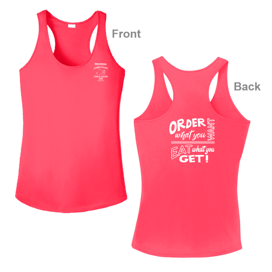 Women's Order What You Want Razer Back Tank - Left Chest & Back Imprint